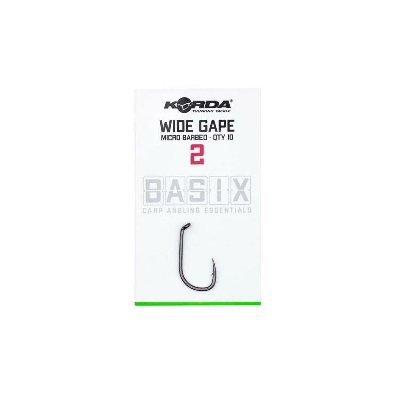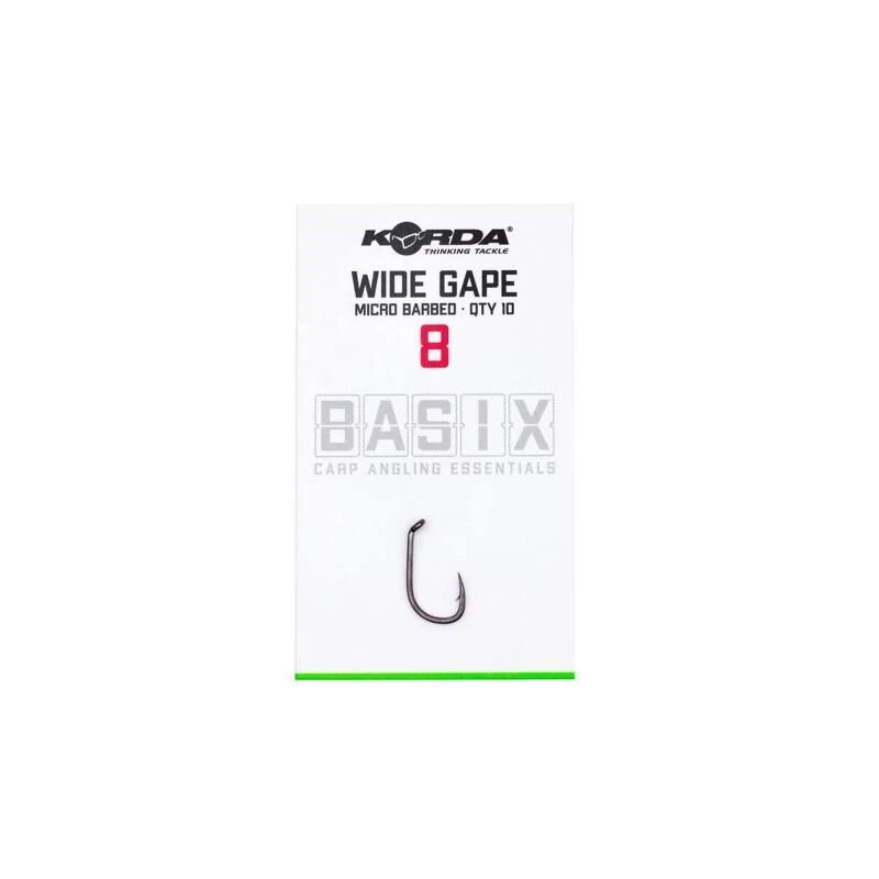 De Korda Basix Wide Gape haken zijn gemaakt op een allround doelgroep karpervissers. Deze kunnen perfect gebruikt worden voor een breed scala aan ready rigs zonder daar extra componenten aan hoeven toe te voegen. Of je nou met boilies, pop-ups of wafters vist, deze haken zijn voor iedere situatie geschikt. Door de agressieve in-turned oog draait de haak heel snel en grijpt meteen in de mond van de vis zonder dat er kickers of alligners gebruikt hoeven te worden. De haak wordt gemaakt met X Gauge wire. Dus is het overal te gebruiken.